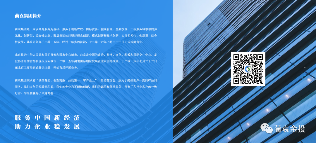 蔺袁集团是一家以商务服务为基础、服务于创新农牧、国际贸易、健康管理、金融投资、工程服务等领域的多元化、创新型、综合性企业。蔺袁集团始终坚持理念创新、模式创新和技术创新,实行多元化、创新型、综合性发展。其公司创办于二零一五年,经过一年多的沉淀,于二零一六年七月二十二日正式挂牌营业。